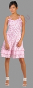 Сорочка полуприлегающего силуэта, на тонких регулируемых бретелях, завязывающихся спереди. Спинка и перед сорочки - с рельефами. По низу сорочки - присборенные воланы. Бретели и средний волан выполнены из трикотажного полотна "компаньона" с рисунком в клетку. Длина по боковому шву - 72 см.